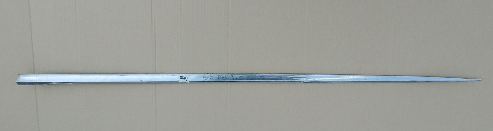 Unknown placement. Looking at the way its beveled it appears to be left side. Faded and pitted. Damage on large end. 50 1/2"" #5601